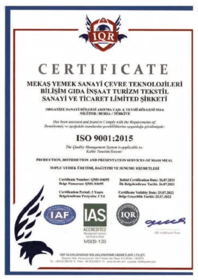 Operasyonun tüm süreci Kalite Yönetim Sertifikasyonlarına uygun bir şekilde yapılmaktadır.
